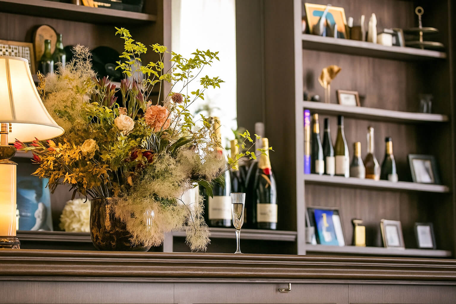 自然光が心地よく降り注ぐスペース。バーカウンターでドリンクを振る舞いお食事前の時間も有意義にお使いいただけます。